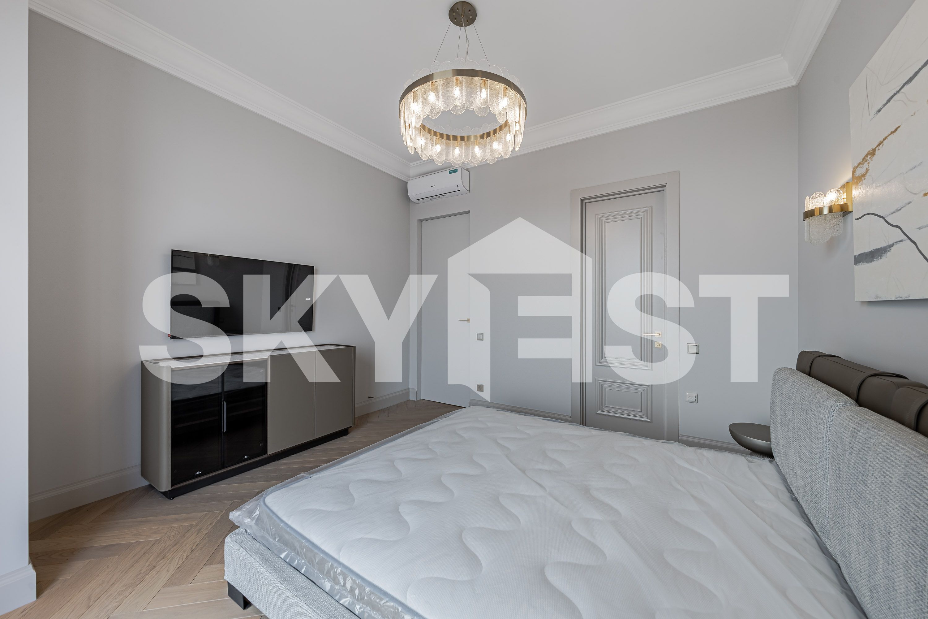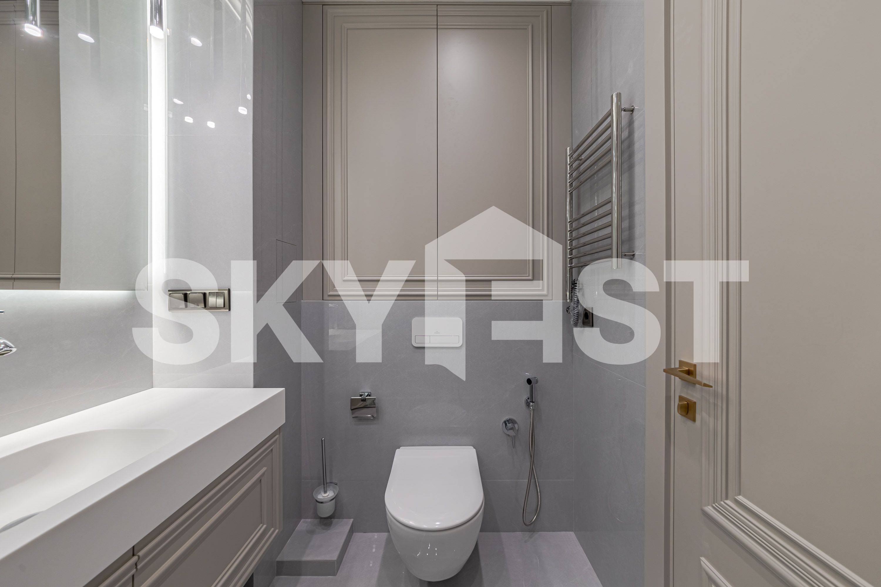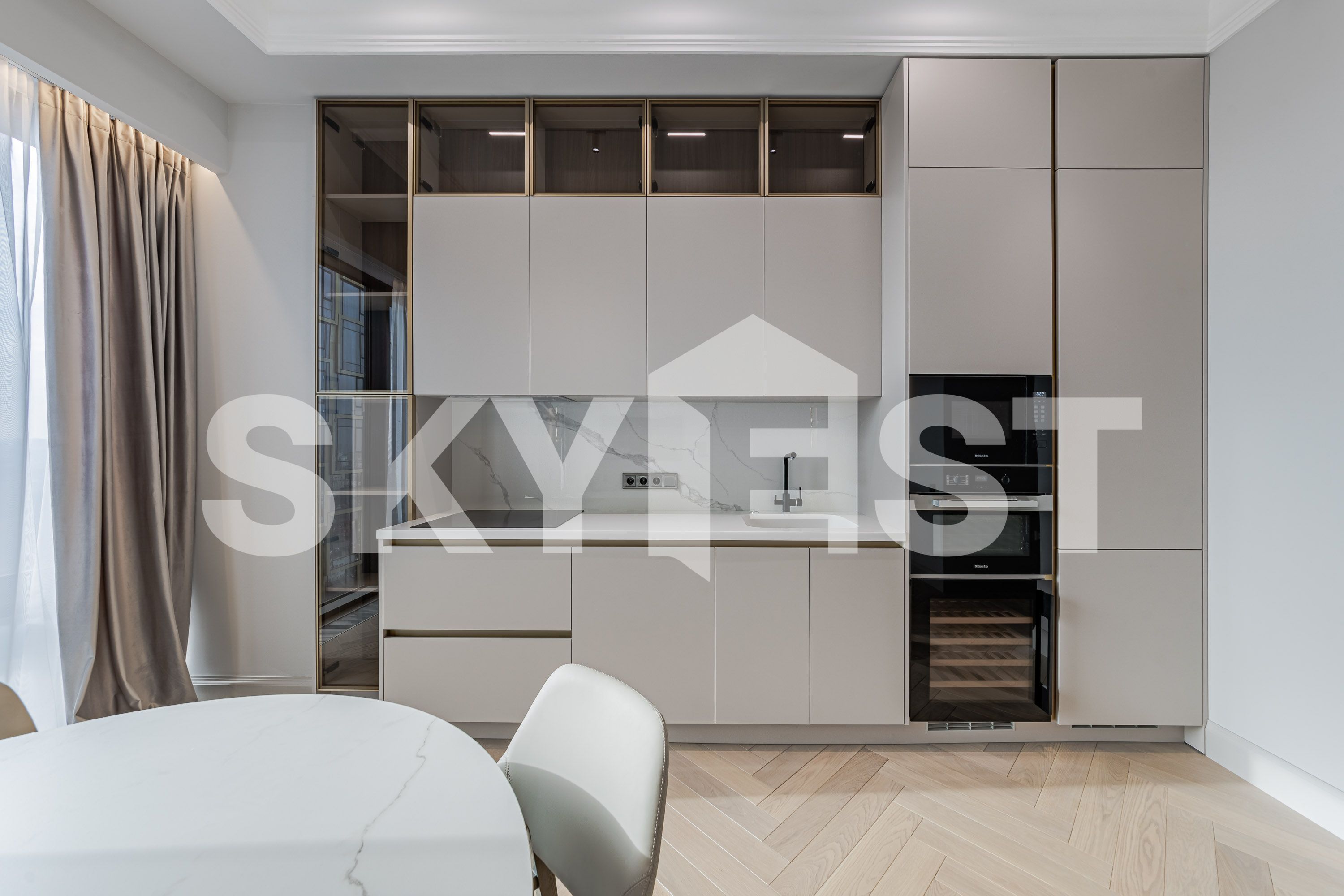 Планировка: кухня, гостиная, 2 cпальни, ванная комната, гостевой санузел, гордеробная, холл.