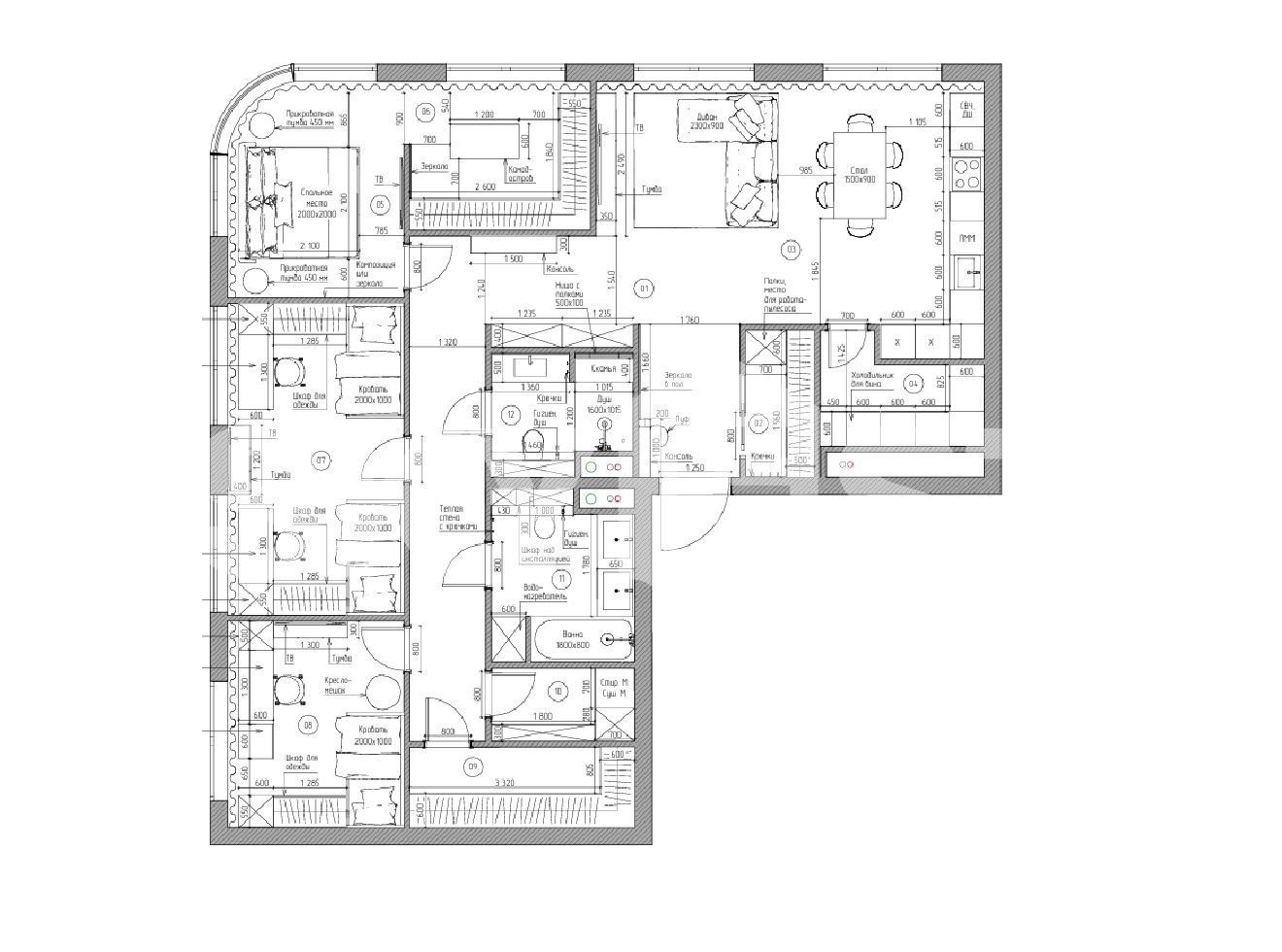 Планировка: просторная кухня-гостиная, спальня с ванной комнатой и гардеробной, 2 спальни, санузел, 2 гардеробные, постирочная, кладовая.