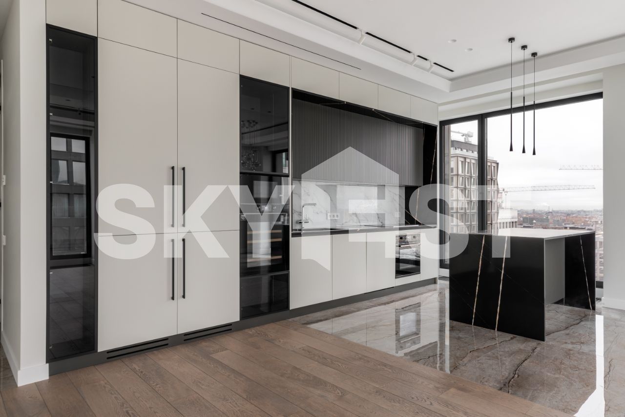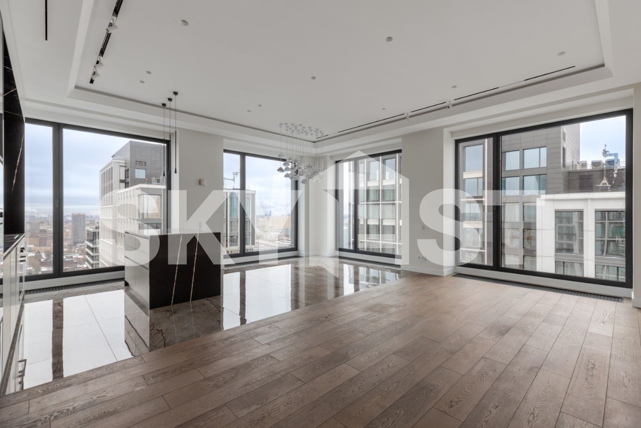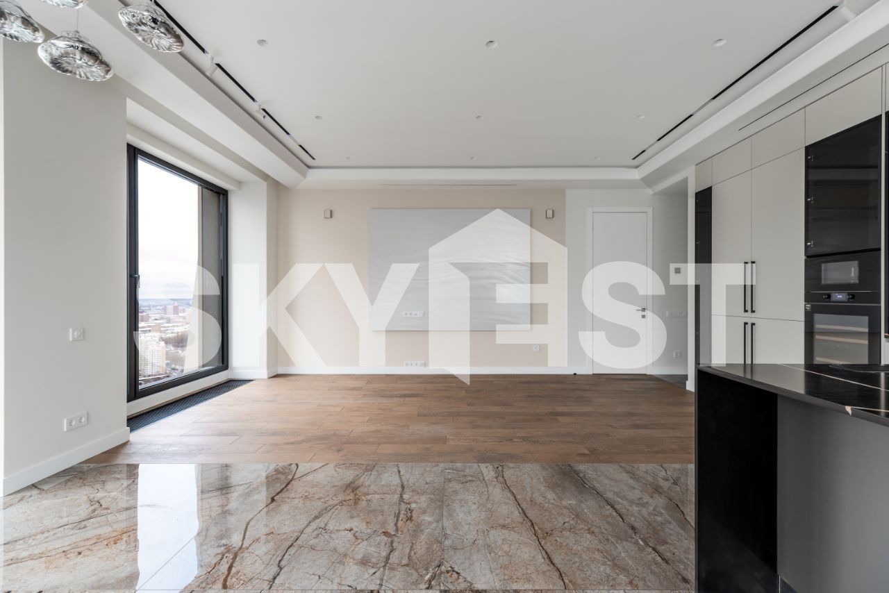 Продажа 4-комнатной квартиры общей площадью 138 кв.м. Метро Динамо, 8 минут пешком. Ленинградский проспект, 37/5. ЖК Прайм Парк (Prime Park). Новый эксклюзивный ремонт по индивидуальному дизайн-проекту. В отделке квартиры использованы только качественные материалы. Ремонт делали для себя с большим вниманием к деталям и качеству. В квартире никто не жил. Кухонный гарнитур и остров выполнены на заказ с обрамлением кварцевым агломератом Sapienstone dark marquina. Установлена бытовая техника от элитного бренда Kuppersbusch. Укладка пола выполнена из инженерной доски-техномассива дуба (с укладкой дополнительного фанерного слоя снизу), в прихожей, санузлах и кухне-гостиной более пяти сортов премиального керамогранита. Есть готовый дизайн проект, при желании будущих собственников возможно доставить мебель. В квартире сделана собственная приточно-вытяжная вентиляция. Есть система климат-контроля с забором свежего воздуха с фасада. Теплые полы в прихожей, санузлах и в зоне кухни. Панорамные окна. Высокие потолки 3,1 м.