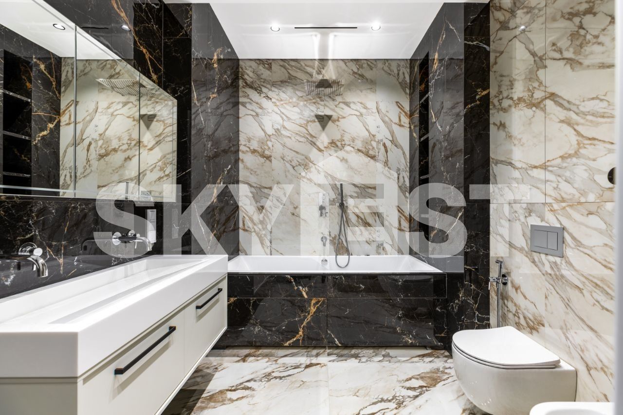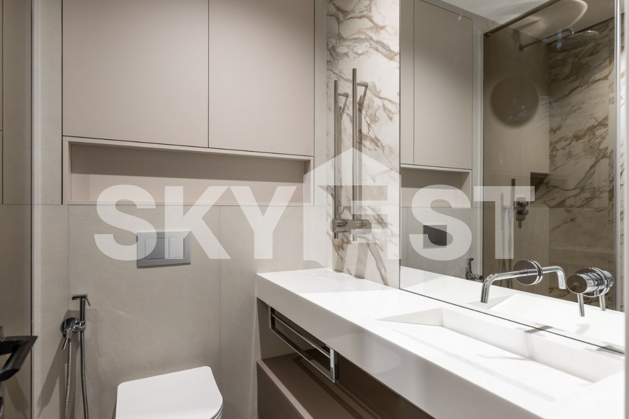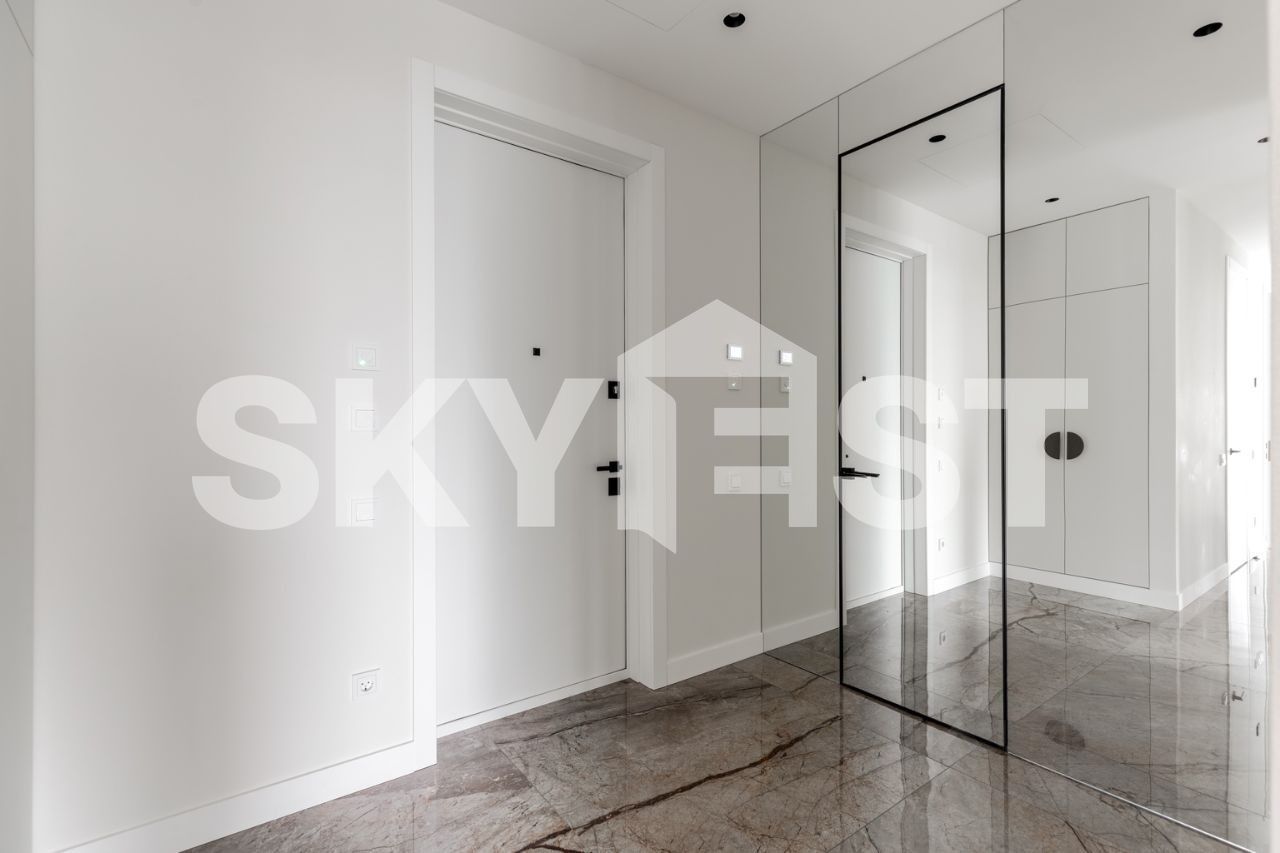 Продажа 4-комнатной квартиры общей площадью 138 кв.м. Метро Динамо, 8 минут пешком. Ленинградский проспект, 37/5. ЖК Прайм Парк (Prime Park). Новый эксклюзивный ремонт по индивидуальному дизайн-проекту. В отделке квартиры использованы только качественные материалы. Ремонт делали для себя с большим вниманием к деталям и качеству. В квартире никто не жил. Кухонный гарнитур и остров выполнены на заказ с обрамлением кварцевым агломератом Sapienstone dark marquina. Установлена бытовая техника от элитного бренда Kuppersbusch. Укладка пола выполнена из инженерной доски-техномассива дуба (с укладкой дополнительного фанерного слоя снизу), в прихожей, санузлах и кухне-гостиной более пяти сортов премиального керамогранита. Есть готовый дизайн проект, при желании будущих собственников возможно доставить мебель. В квартире сделана собственная приточно-вытяжная вентиляция. Есть система климат-контроля с забором свежего воздуха с фасада. Теплые полы в прихожей, санузлах и в зоне кухни. Панорамные окна. Высокие потолки 3,1 м.