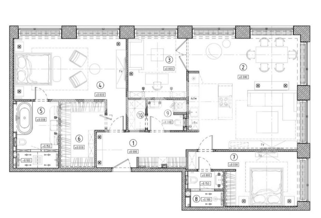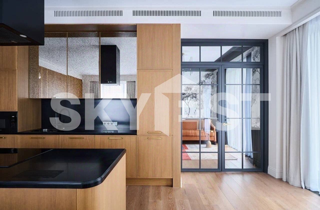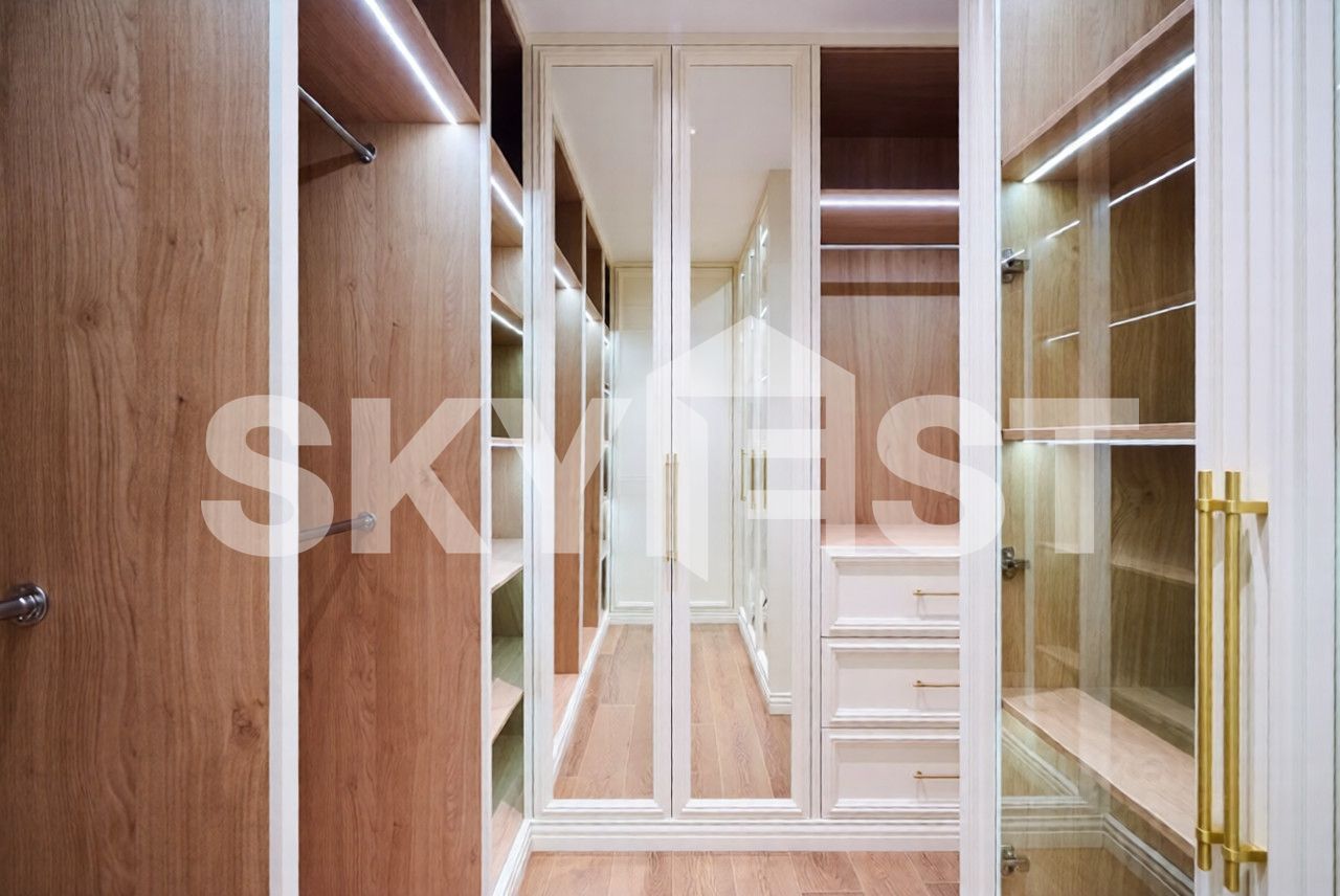 Планировка: кухня-гостиная, 3 спальни, ванная комната, гостевой санузел, гардеробная комната, холл.