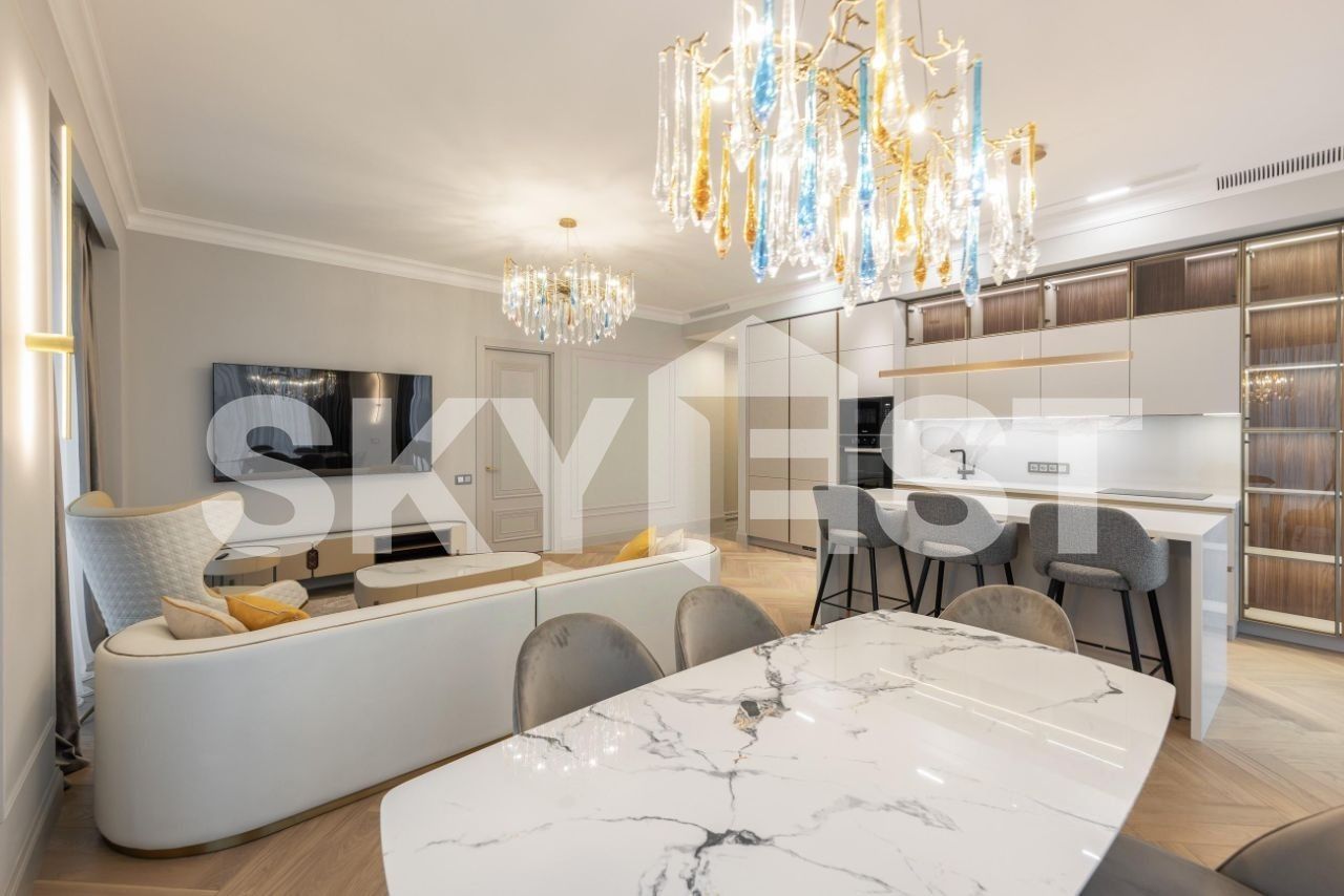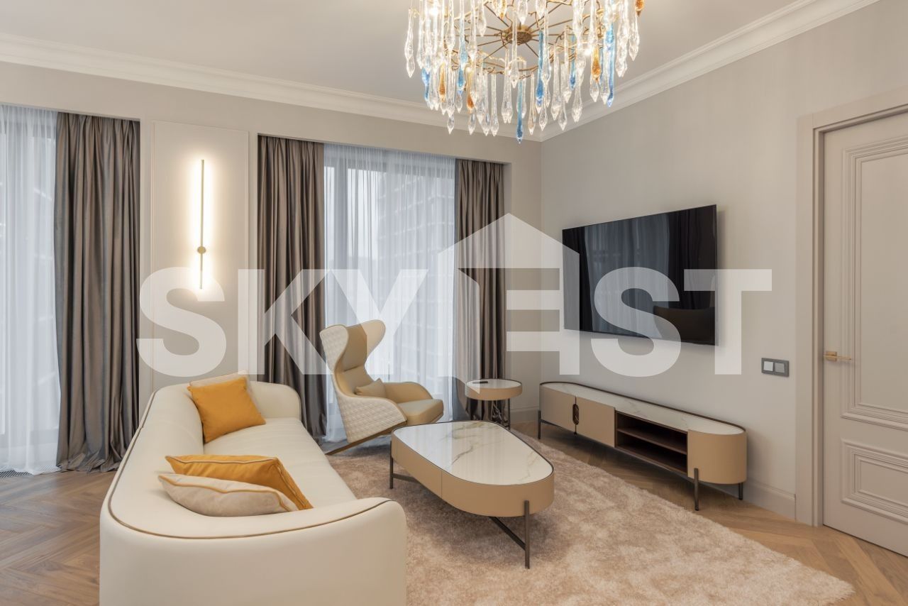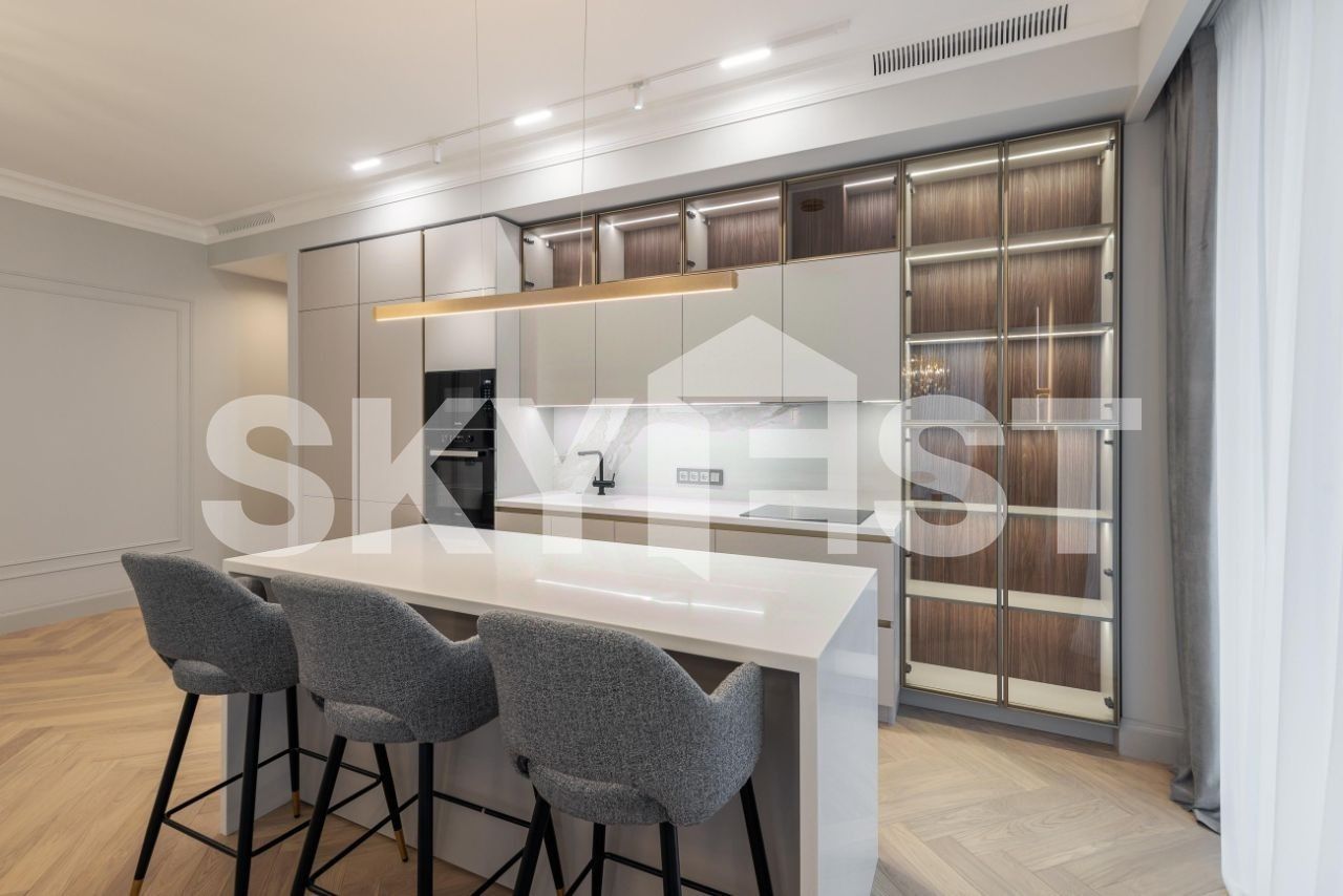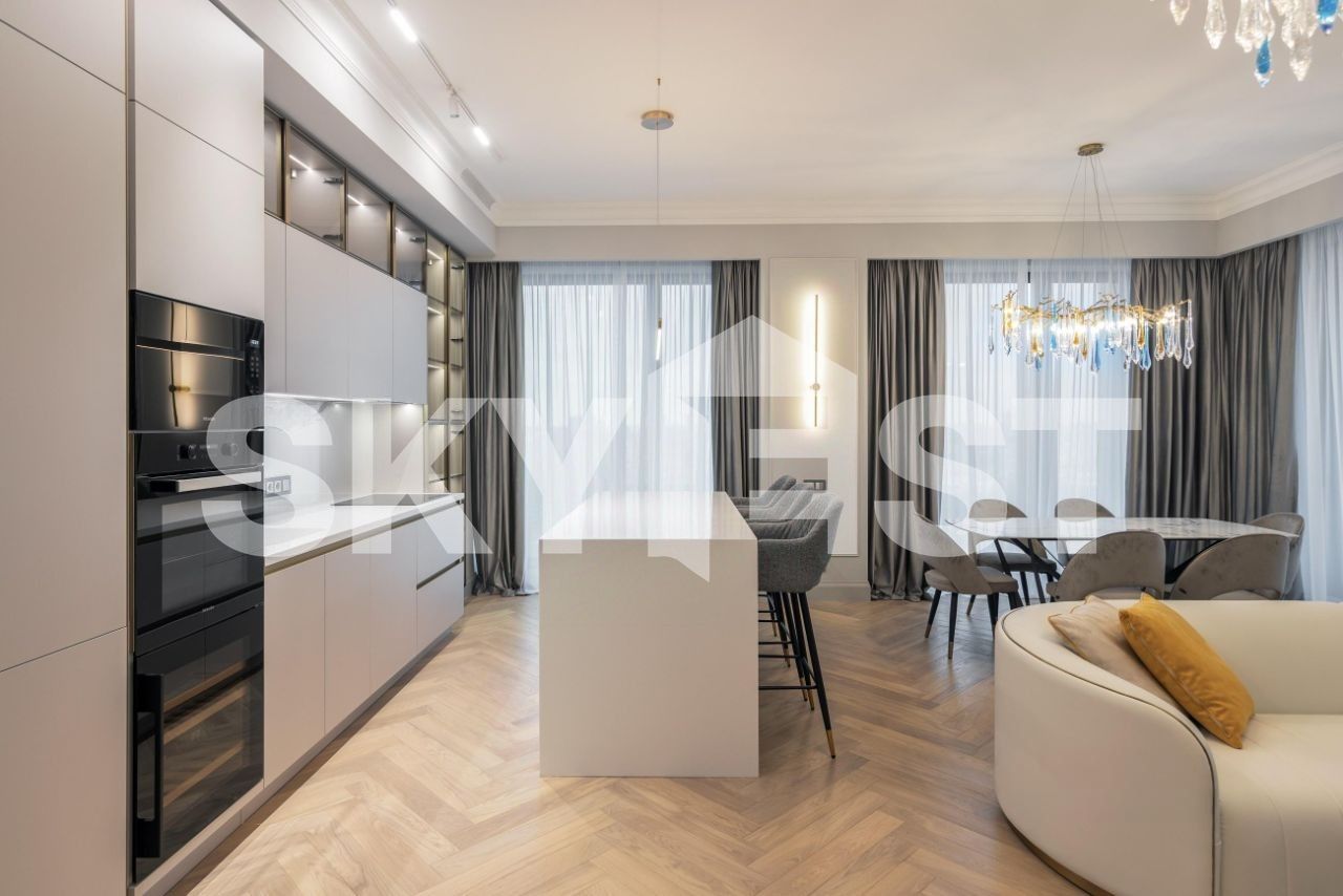 Продажа видовой 5-комнатной квартиры общей площадью 161 кв.м. Метро Динамо, 8 минут пешком. Ленинградский проспект, 37/3. ЖК Прайм Парк (Prime Park). Квартира полностью меблирована и укомплектована премиальной техникой. Благодаря панорамному остеклению и потолкам высотой 3,2 метра пространство наполнено воздухом и естественным светом. Из окон открываются панорамные виды на город.